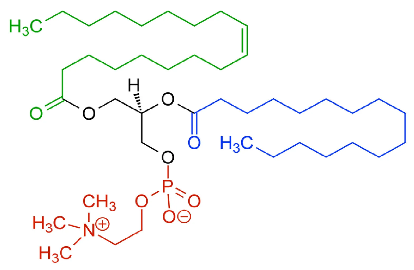 At its core, mayonnaise is an oil-in-water emulsion of a neutrally flavored oil—often canola or safflower—and an acid—usually lemon juice or white wine vinegar. Raw or pasteurized egg is added and contains the primary emulsifier. The emulsifying power of the egg yolks comes from lecithin, a phospholipid shown in the figure. The lecithin molecule contains a polar phosphate group (red), as well as a nonpolar fatty acid (green). When making an oil-in-water emulsion, the lecithin molecules orient themselves around oil droplets with their nonpolar heads facing inward and their polar tails facing outward into the continuous phase. This reduces the interfacial tension between the two liquids and stabilizes the mixture. These properties allow lecithin to be an incredibly powerful emulsifier. When combined properly, one egg yolk can reportedly stabilize almost 6 gallons of mayonnaise.